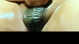 Kakak Tiri Goda Memek Basah Menetes Close Up, Berakhir dengan Cumshot