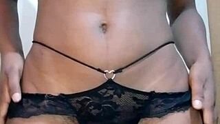 tattooed skinny slut strips black lace panties. she rides monster cock moaning