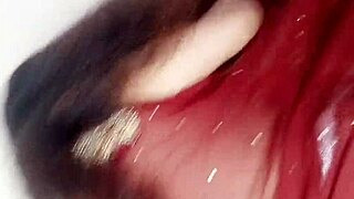 Horny Indian Bisexual Shemale Masturbates in Red Silk Satin with Intense Homemade Action.