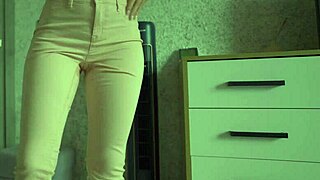 amateur woman pees in jeans while smoking and stripping