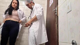 hot nurse sneaks to hospital bathroom for doctor's massive cock pounding