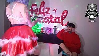 mulher do noel domina corninho com dois dotados monster cocks!
