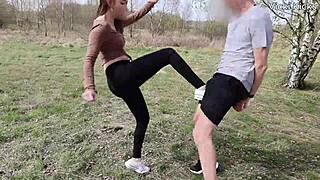 kinky exhibitionist couple flashes tits and fucks hard outdoors in public