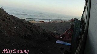Francouzská milfka dává drzou obracečku na nahé pláži cizákovi