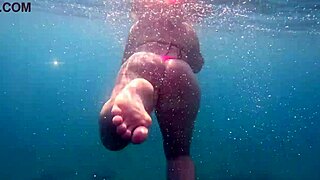 Pawg teases curves in thong bikini underwater swim