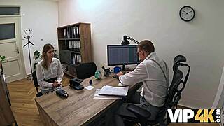 In the OFFICE, a BLONDE WHORE endures ROUGH ANAL FUCKING to secure her LOAN.