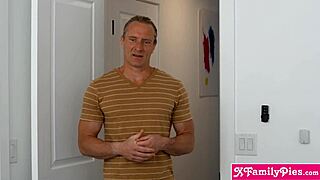 Brunette teen stepdaughter deepthroats stepdad quick in living room
