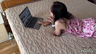 my stepsister slipped into a maid costume for solo pillow action at home. she didn’t notice anyone watching her wild ride.