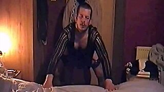 Amateur mature married couple in venice mask and black lingerie have sex