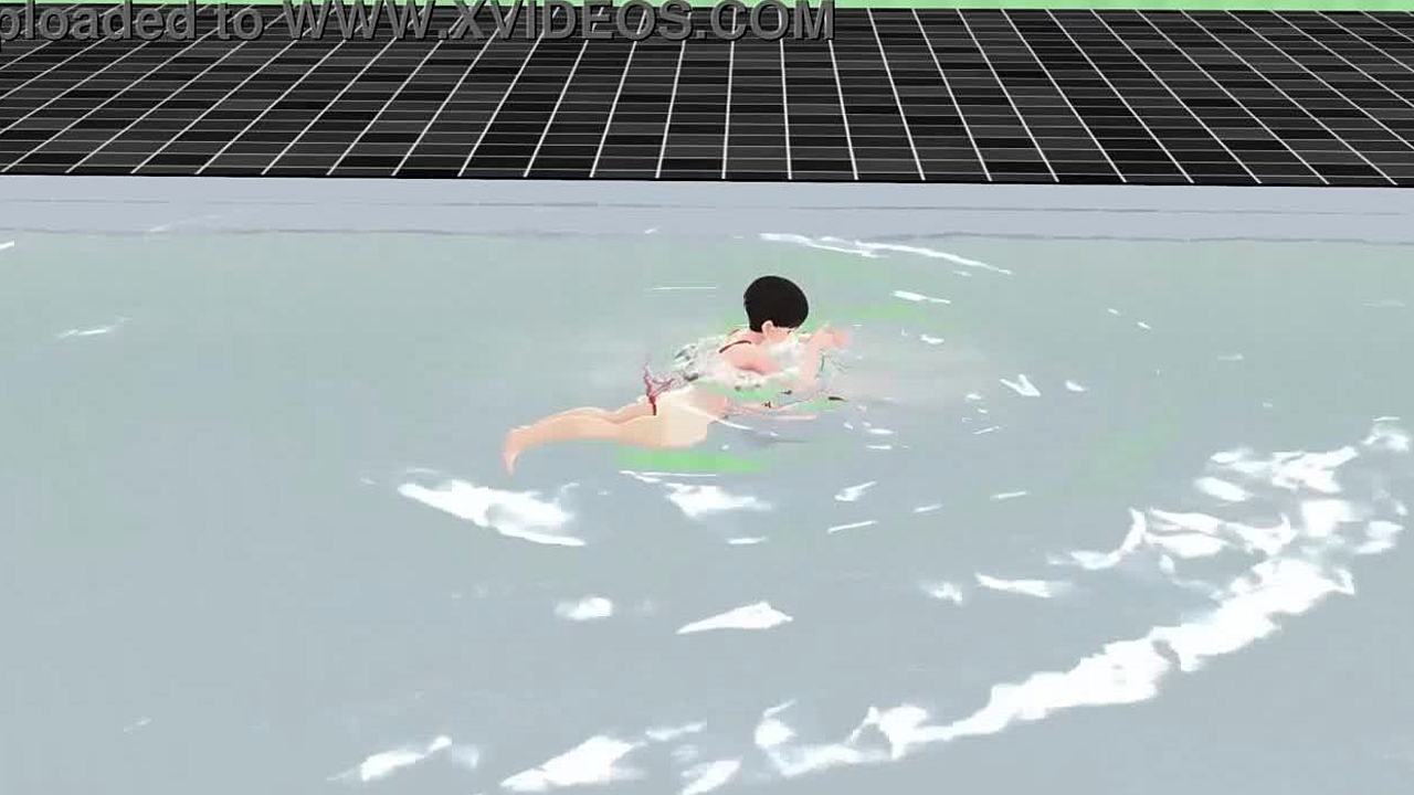 Anime girl swims in micro bikini, nip slip happens! ЁЯШН
