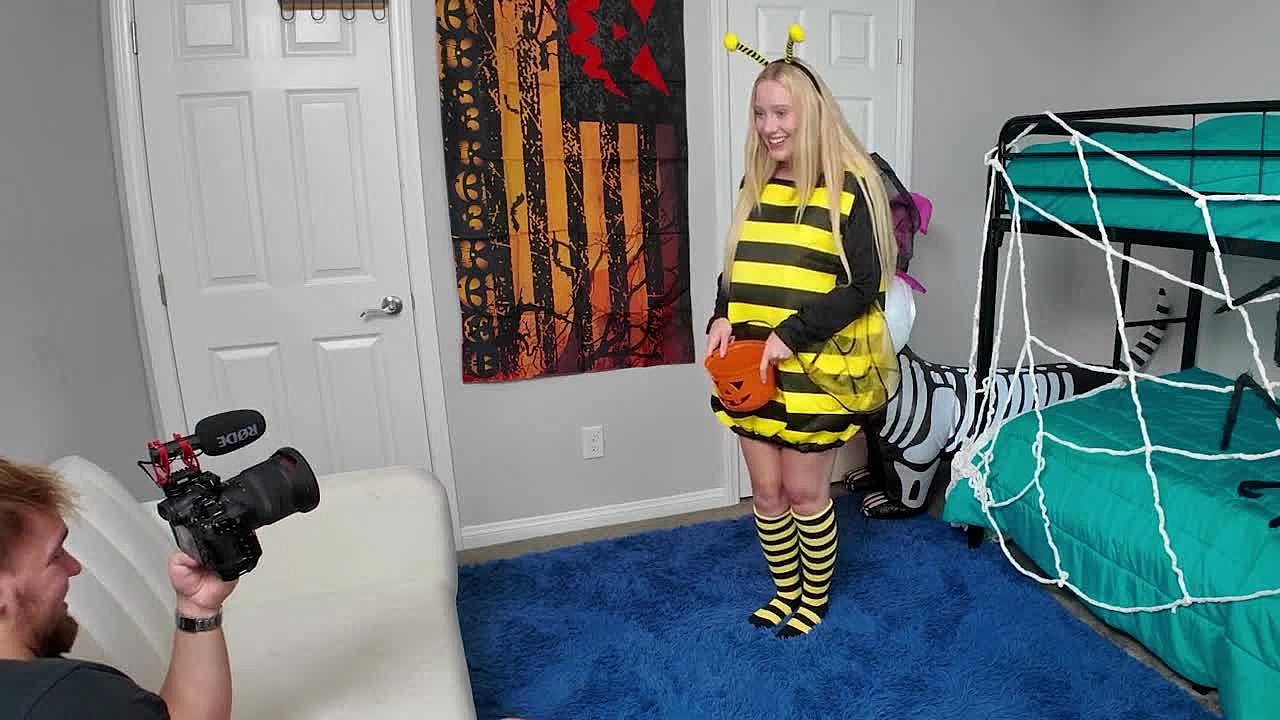 Thick blonde Kallie Taylor fucks rough in Halloween BTS closeup cowgirl doggy